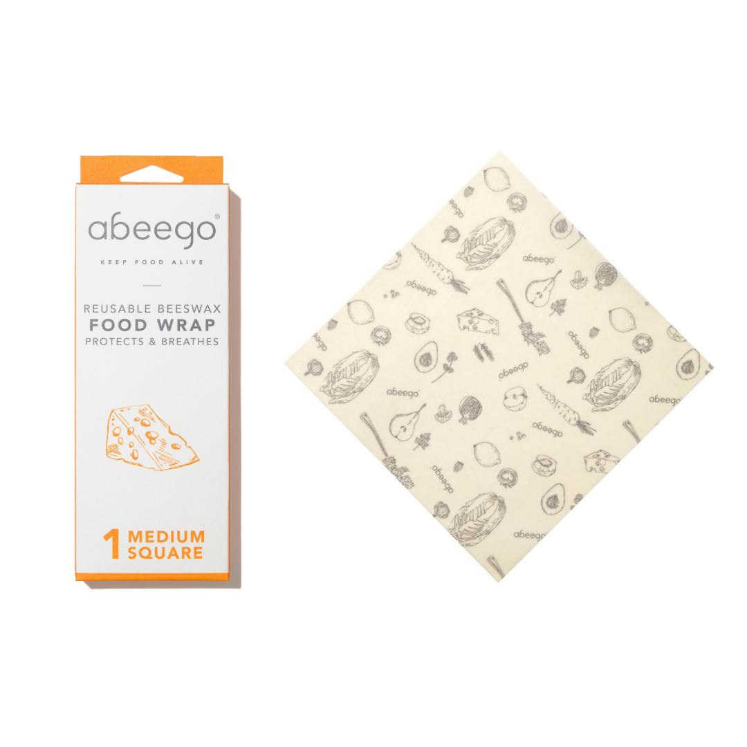 Abeego Reusable Beeswax Food Wrap keeps food fresh! These wraps breathe and protect to extend the life of food to the very last bite all while being plastic-free! Wrap, wash, reuse! These self-adhesive wraps will last you at least a year with regular use and proper care! Replace when worn and no longer sticks. Use this Medium Square wrap to save foods like cut-up melon, cured meats, cover dipping bowls, and cheese.