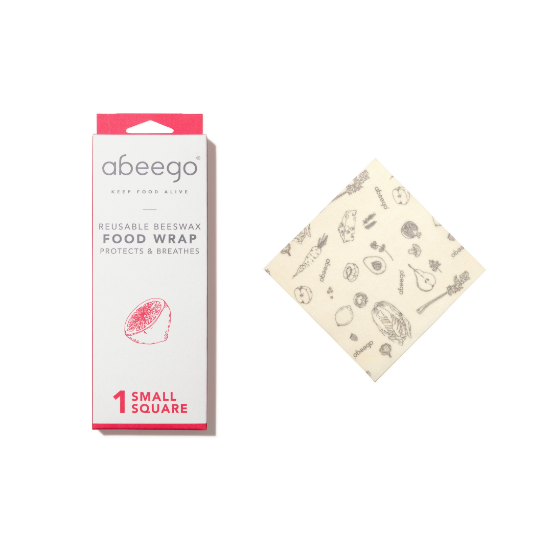 Abeego Reusable Beeswax Food Wrap keeps food fresh! These wraps breathe and protect to extend the life of food to the very last bite all while being plastic-free! Wrap, wash, reuse! These self-adhesive wraps will last you at least a year with regular use and proper care! Replace when worn and no longer sticks. Use this Small Square wrap to save onions, berries, juicy citrus, and all your odds and ends. Keep Food Alive with Abeego.