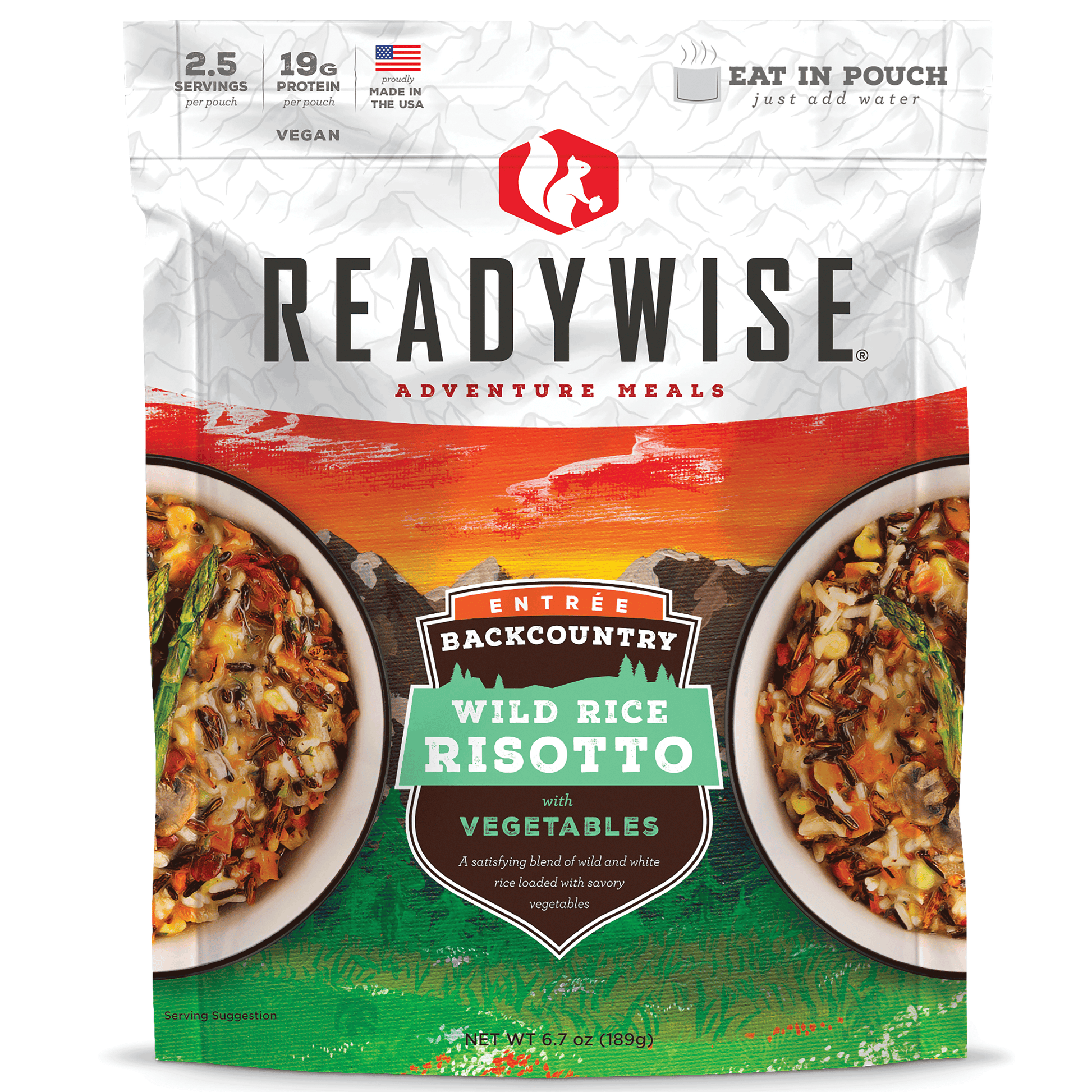 Each pouch of our Backcountry Wild Rice Risotto contains 2.5 servings and is resealable. These pouches are lightweight making them easily portable on any outdoor adventure. Just add water and you can eat directly from the pouch.