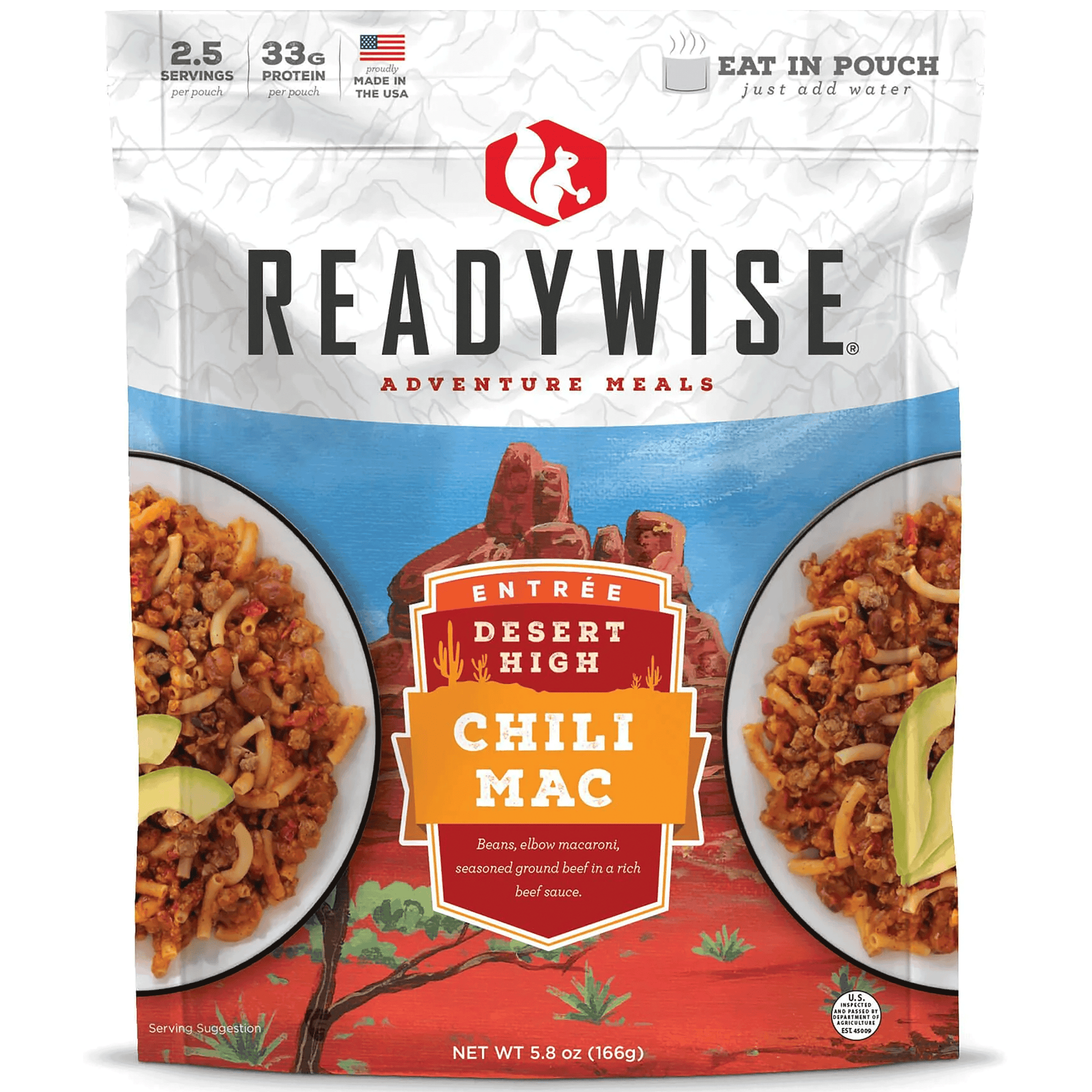 Each pouch of our Desert High Chili Mac with Beef contains 2.5 servings and is resealable. These pouches are lightweight making them easily portable on any outdoor adventure. Just add water and you can eat directly from the pouch.