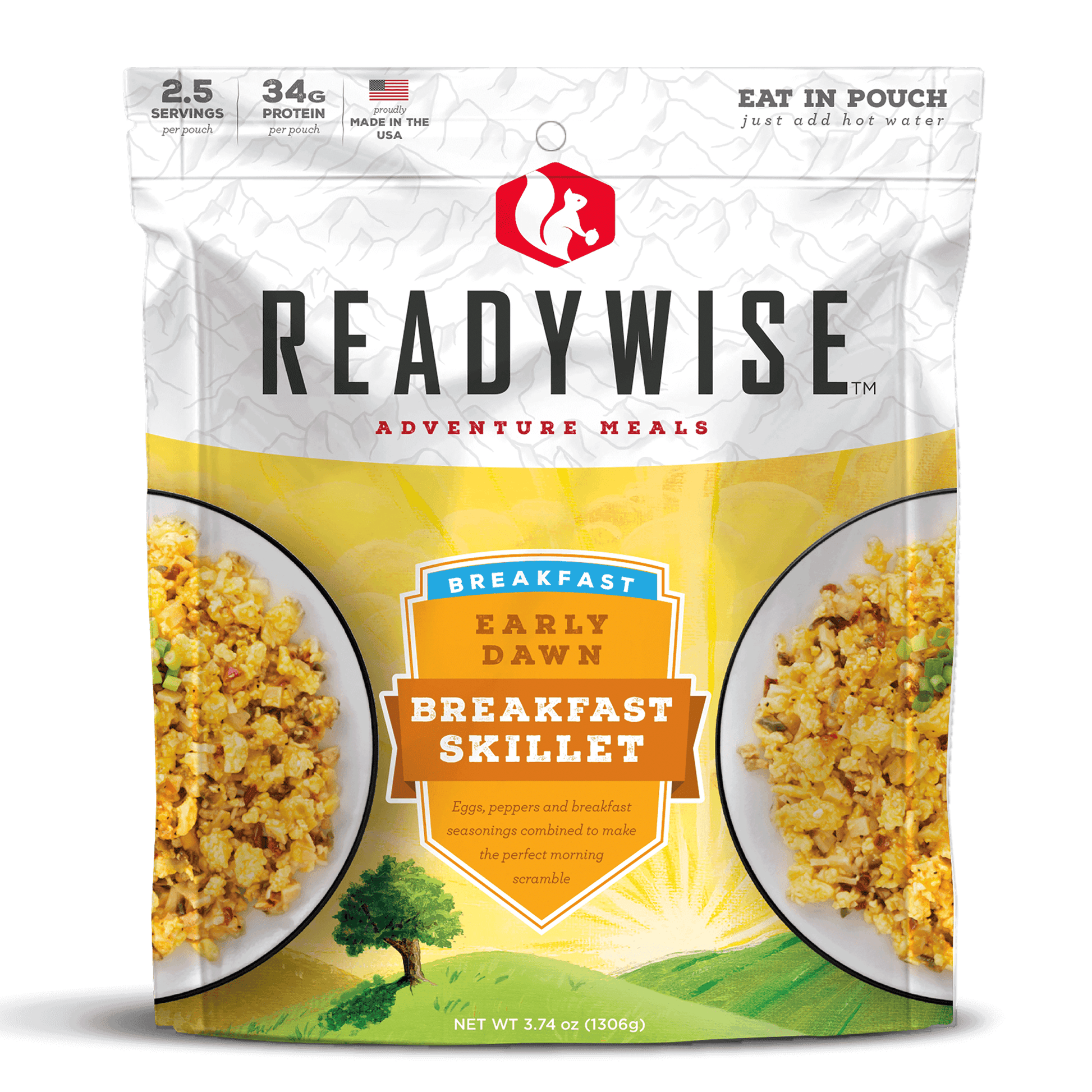 Each pouch of our Early Dawn Breakfast Skillet contains 2.5 servings and is resealable. These pouches are lightweight making them easily portable on any outdoor adventure. Just add water and you can eat directly from the pouch.