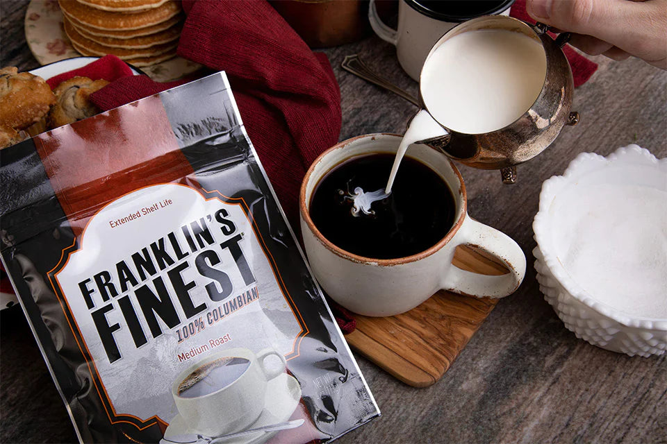 Our Franklin's Finest Coffee is freeze-dried fresh, straight from the tree to our air-tight packaging, to retain the longest shelf life and flavor.
