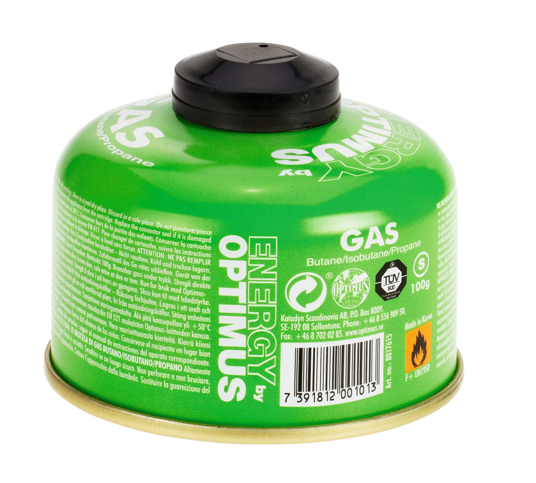Elevate your camping experience with the Optimus gas canister, expertly designed to fuel your stove. This medium-sized, 8 oz. (220 g) metal canister is filled with a premium blend of butane and propane, ensuring optimal stove performance even in chilly conditions. The canister is safeguarded against damage and features a Smart Seal that indicates whether it has been used.