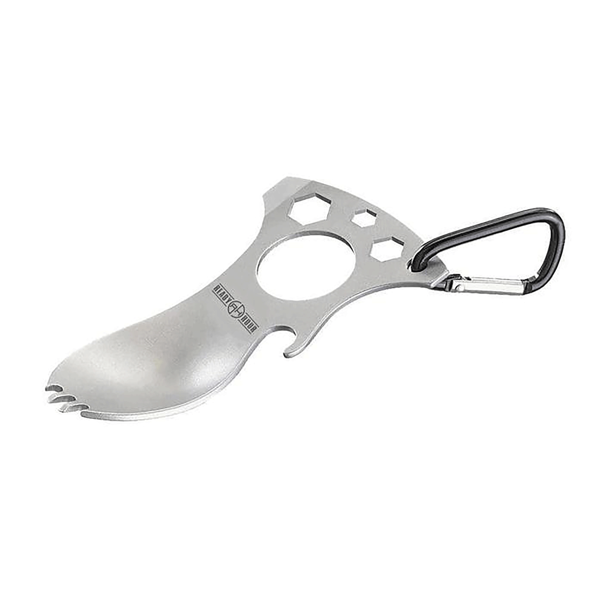 The Grub 'N' Tool includes 5 useful tools in one rugged stainless steel unit. It goes beyond the essential eating utensils - the ones you always forget to bring out in the wild. It also helps you perform light duties around camp.