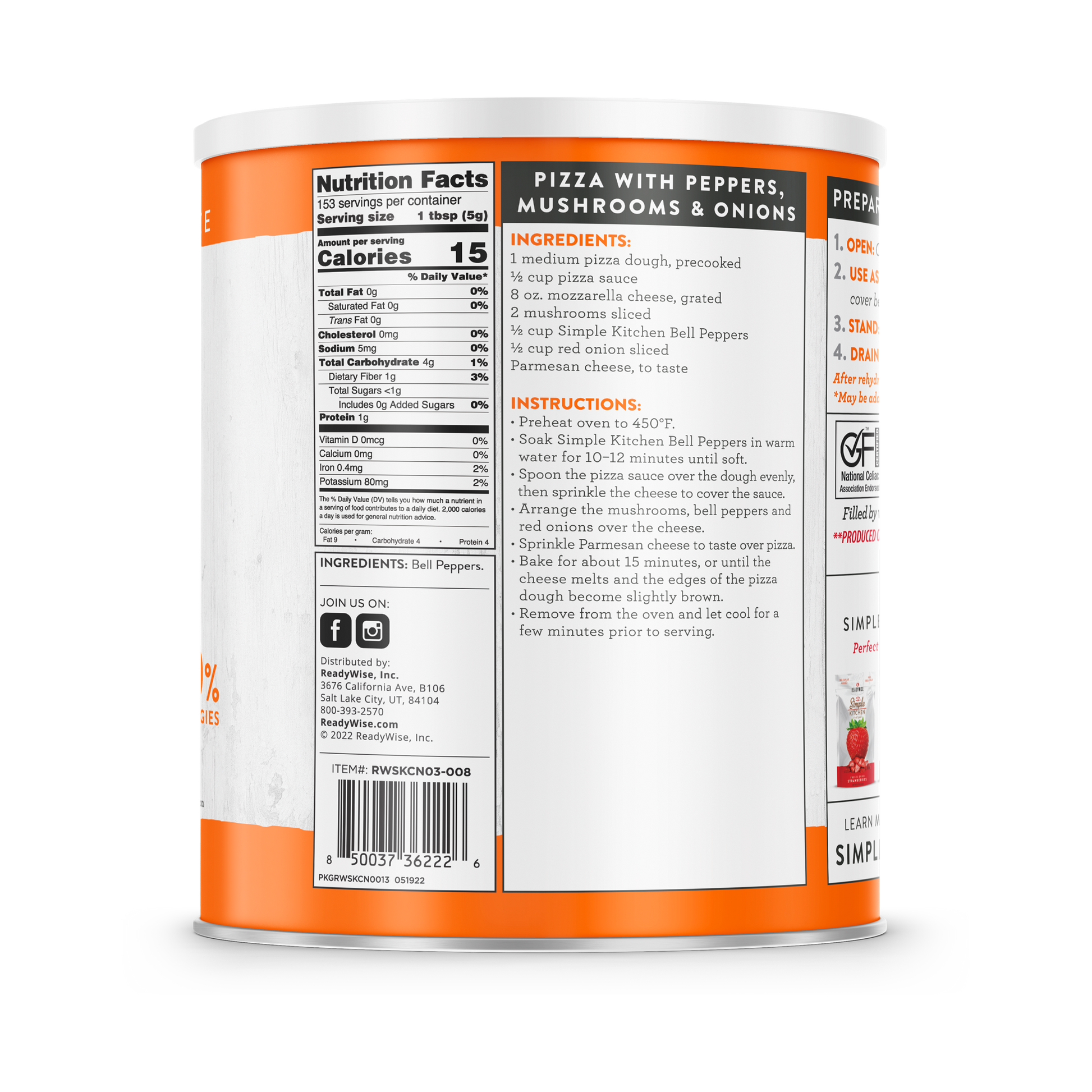 This #10 Can contains 153 servings of our delicious freeze-dried bell peppers.