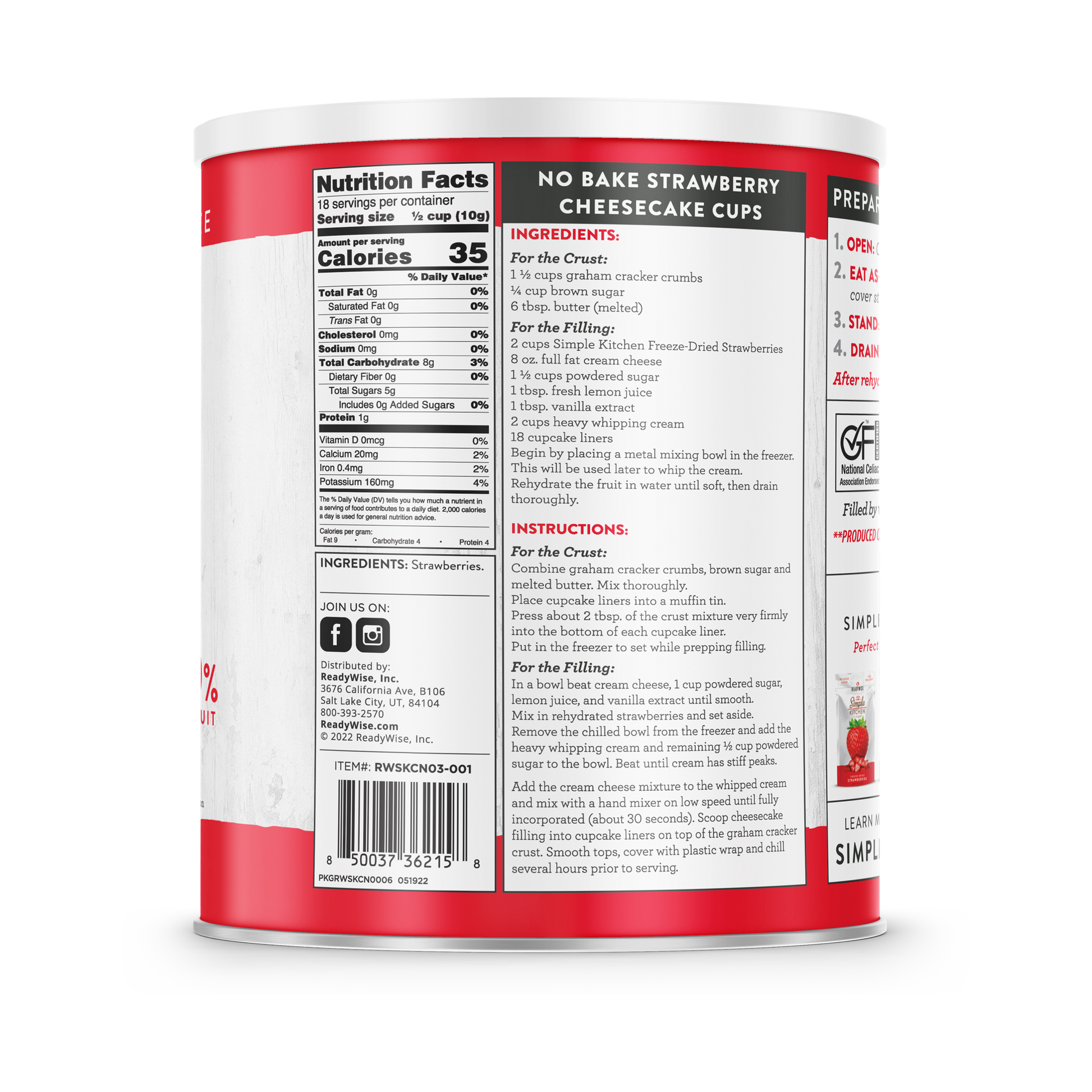 This #10 Can contains 18 servings of our delicious freeze-dried strawberries.